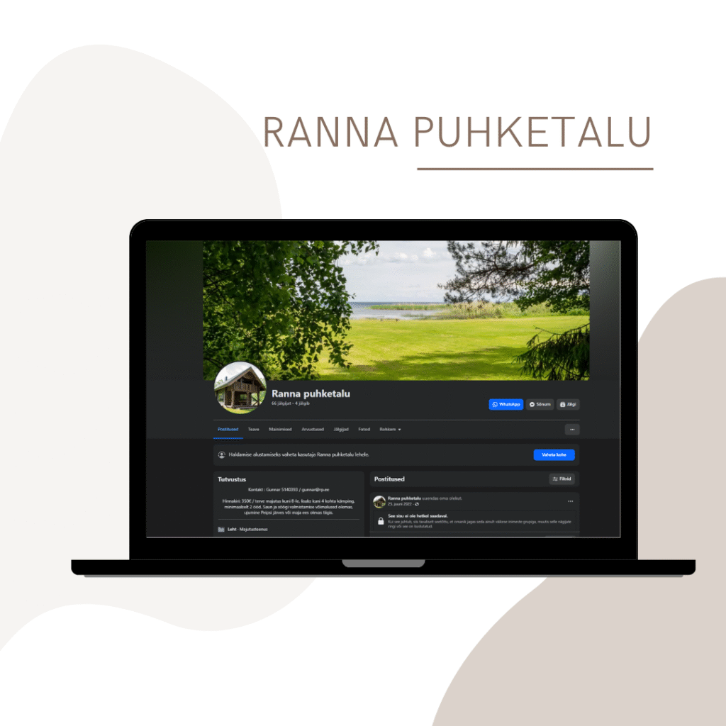 Lõin Ranna Puhketalule täiesti uue Facebooki lehe. Jäädvustasin uue turundusfotod majutusasutusest, mida hiljem kasutati nii Facebooki lehel kui teistes reklaamikanalites.