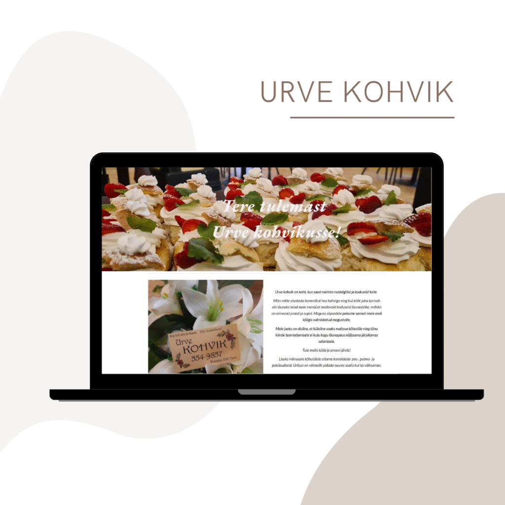 Urve Kohvikule (Googel Pages) sai loodud täiesti uus koduleht alates struktuurist kuni kujunduse ja sisuni. Panin kokku visuaalse stiili, valisin ja lisasin fotod, kujundasin reklaampildid. Hetkel toetan kohvikut ka jooksva kodulehe halduse ja uuenduste.